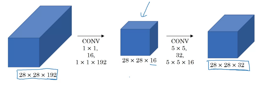 채널을 줄이고 싶을 때는, 바로 위에서 배운 1x1 conv를 사용하면 된다