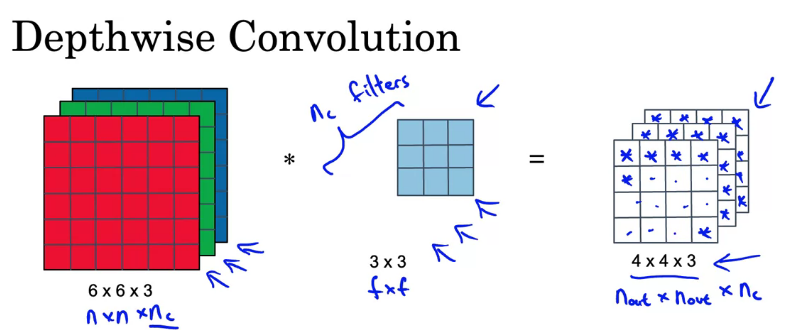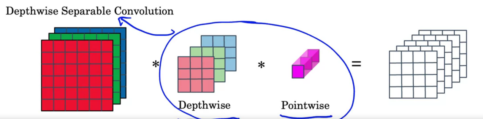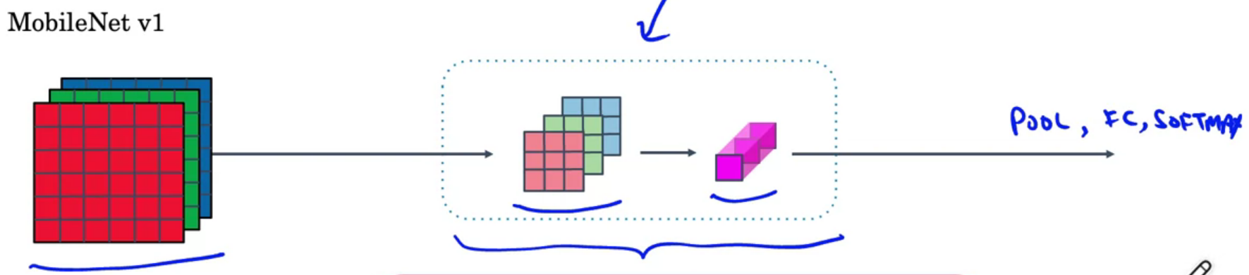 depthwise와 pointwise 두 단계를 합쳐서 depthwise separable 단계를 구성한다