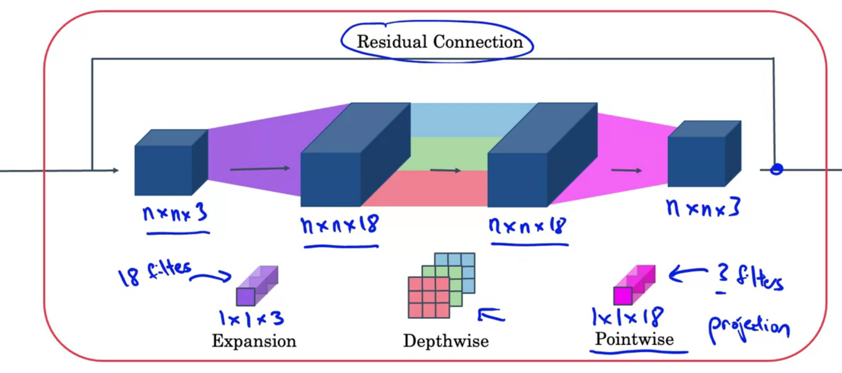 1 x 1 expansion이 채널의 수를 늘려 더 풍부한 학습을 할 수 있도록 해준다