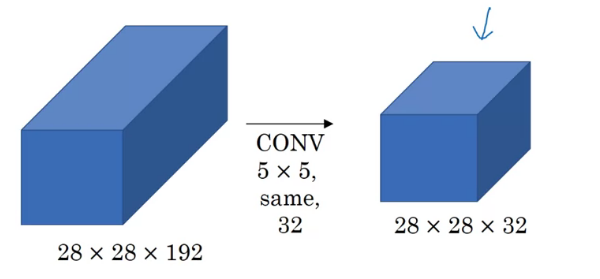 필터의 크기는 5 x 5 x 192이고 32개가 존재한다